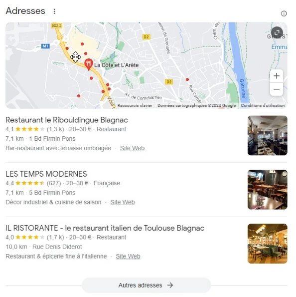 Exemple : “restaurant Blagnac” dans Google