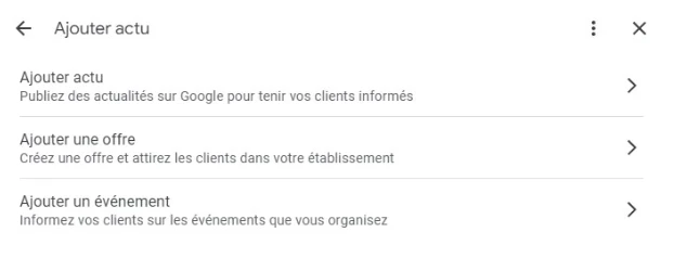 Les quatre types de publications de profil Google Business