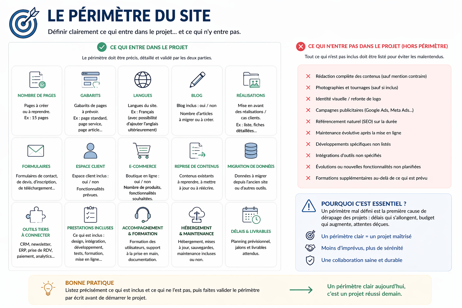 - les erreurs qui font déraper les budgets, les délais ou le référencement ;